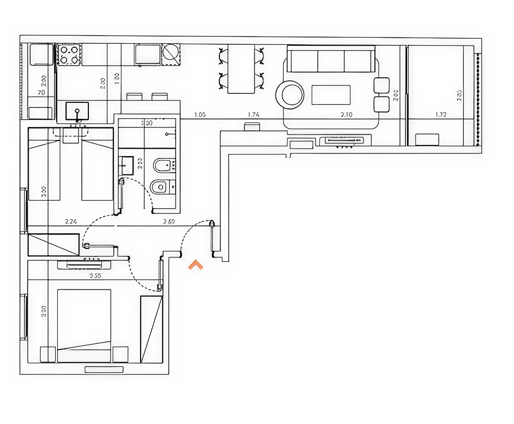 Apartamento de 2 Dormitorios, 1 baño y 2 terrazas.